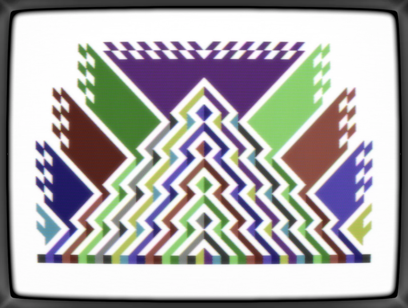 The PETSCII triangle shapes are very versitile, and I thought I'd want to experiment with them a bit more. It all started with a simple line where I recreated the the core idea of t0m3000's t0m3000 picture: a gradient with triagles going from a char color via bg color to another char color in a single vertical line.