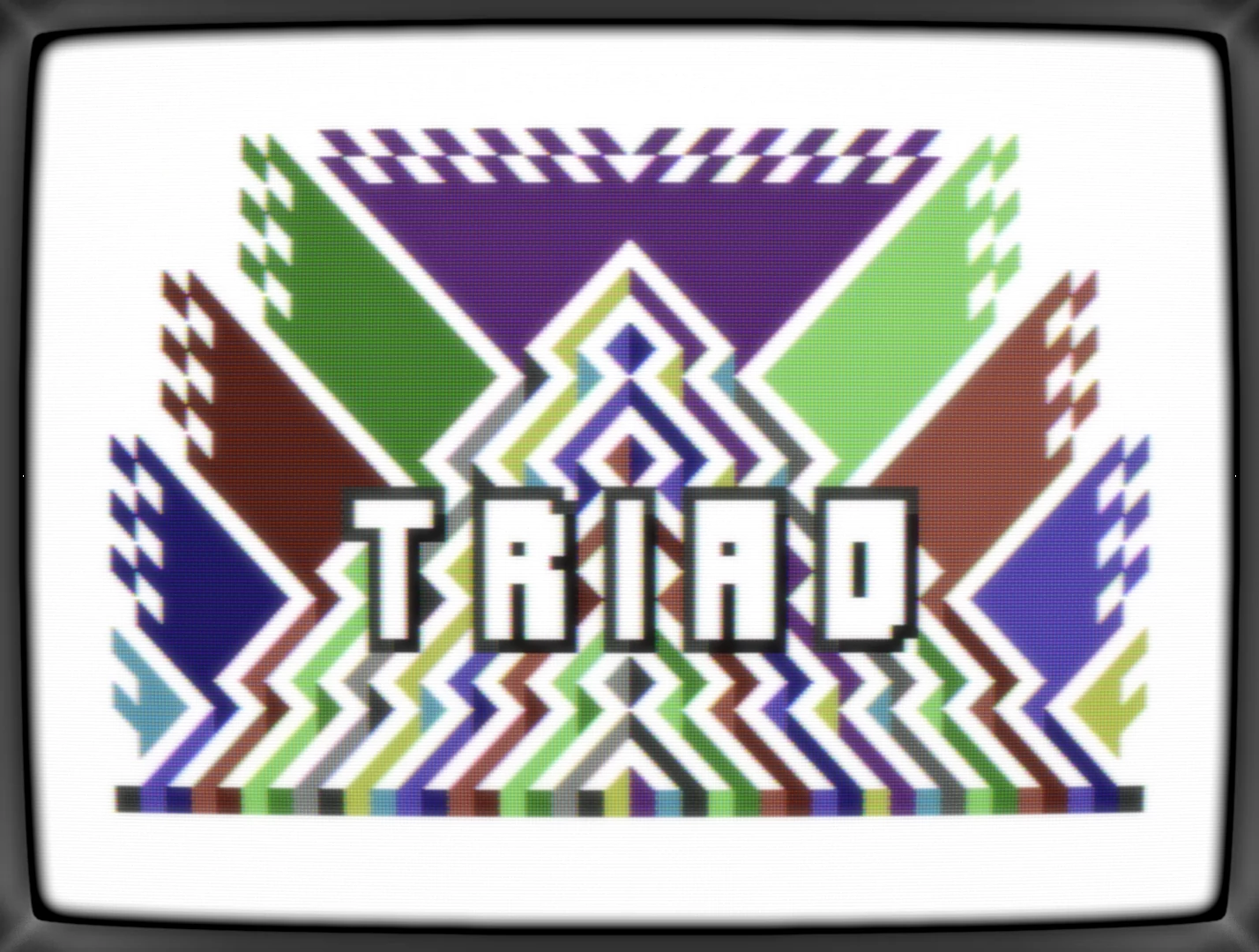 I've been doing quick & dirty scene group logos the other day, and having a huge triangle on the screen does, of course, put 'TRIAD' in my head all along, so why not turn this shape-thingy into another group logo then? Here are a couple of variants that poped up with edits of the background and a very basic font: