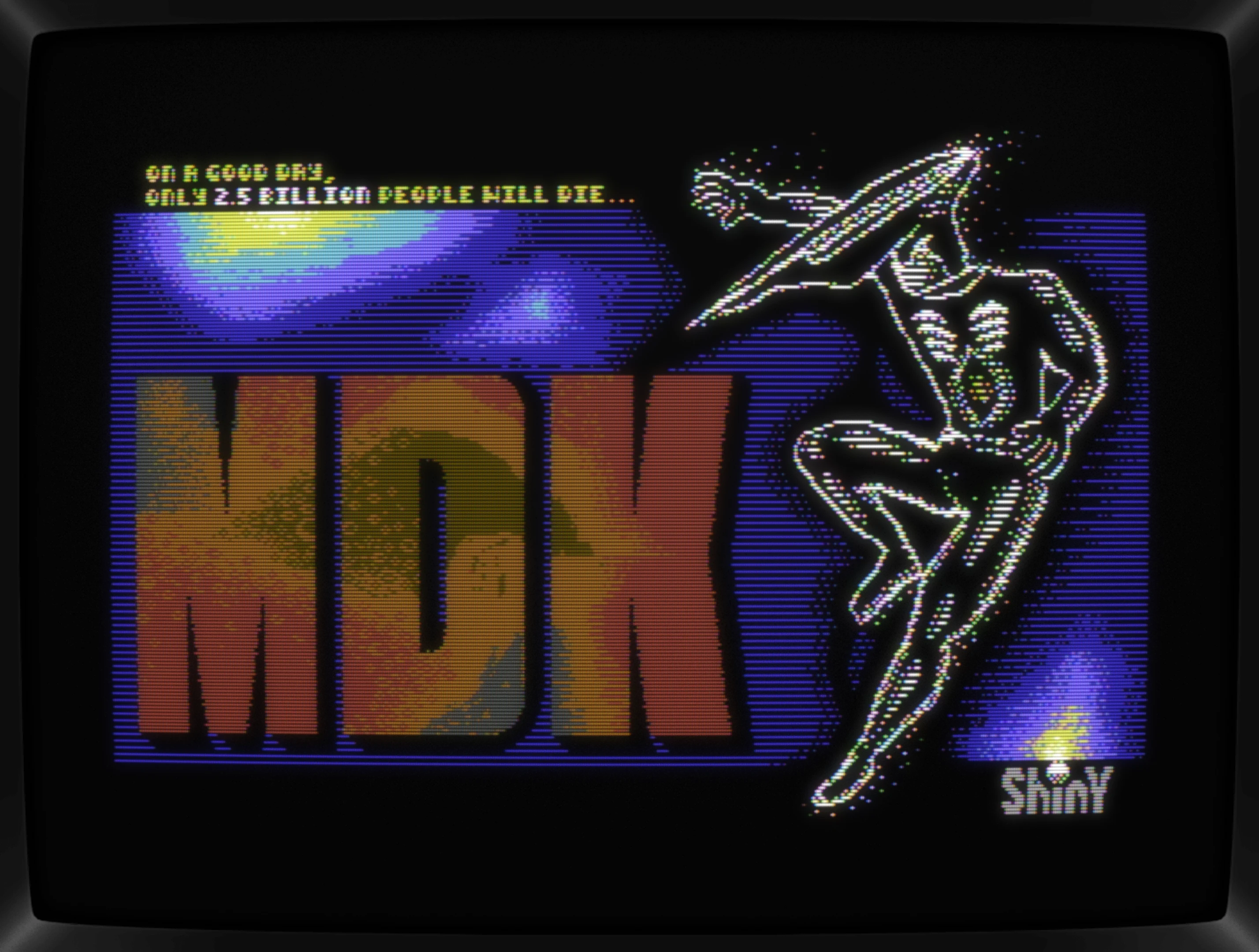 Dipping into other gfx formats than doing PETSCII is something that I am looking forward to and having a compo does help getting motivated. The currently running C64GFX.com Game Loading Screen Compo 2024 made it easy to find a project for practicing. Going for a Hi-Res pic, something not too elaborate was needed and looking over at my shelf full of big box games, MDK came to mind.