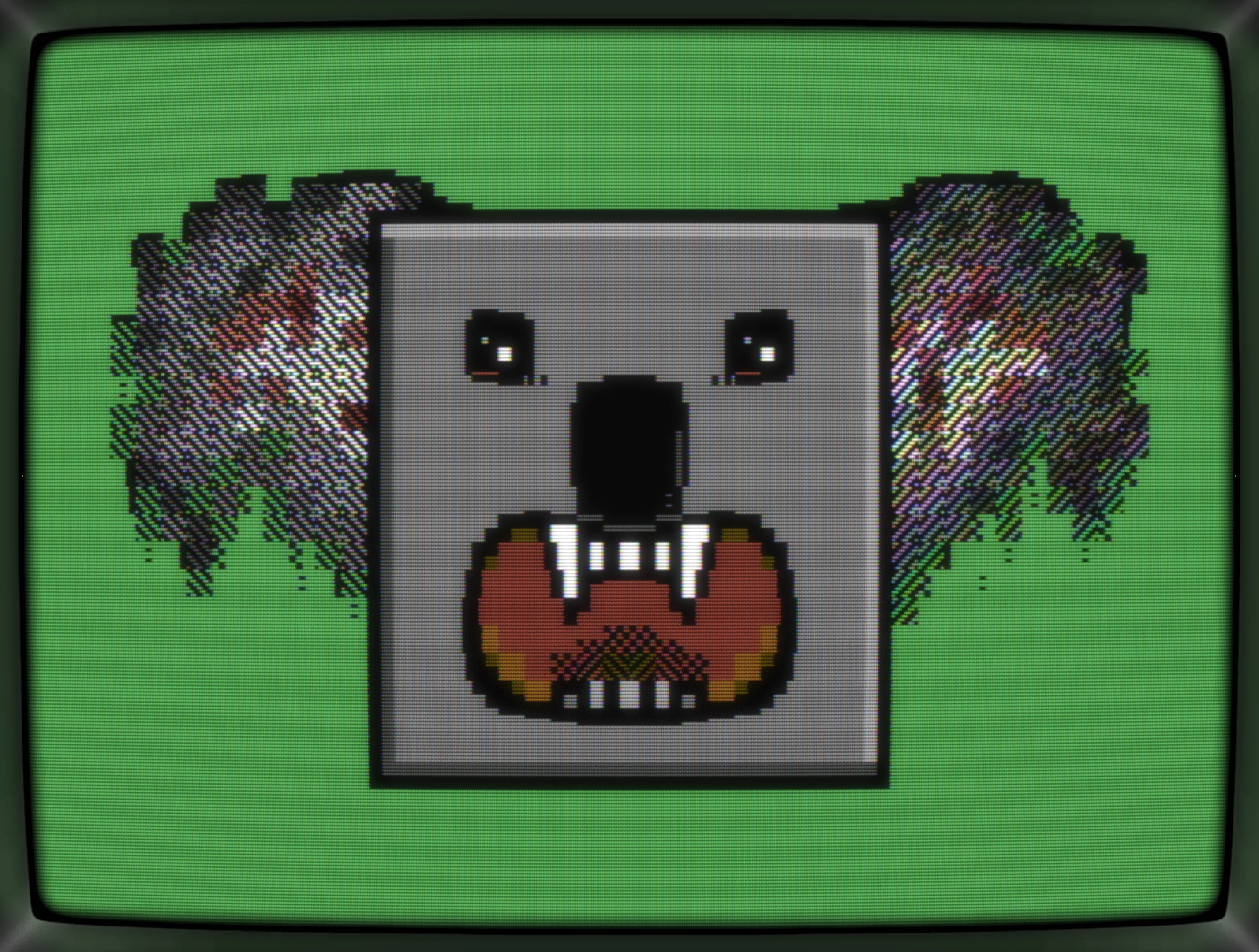 So far, I haven't really used letters in any of my pics and I thought the drop bear's fangs would be something that could work well, so switching to lower-case it was. Also, I do like a challenge and doing another lower-case pic (Tapper is a lower-case pic too but for a different reason which I didn't even follow through in the end) would keep it fresh, although I'm not sure if lower-case is something others really care about. In my book, it's a (tiny) flex because of the GFX chars available being cut down significantly.