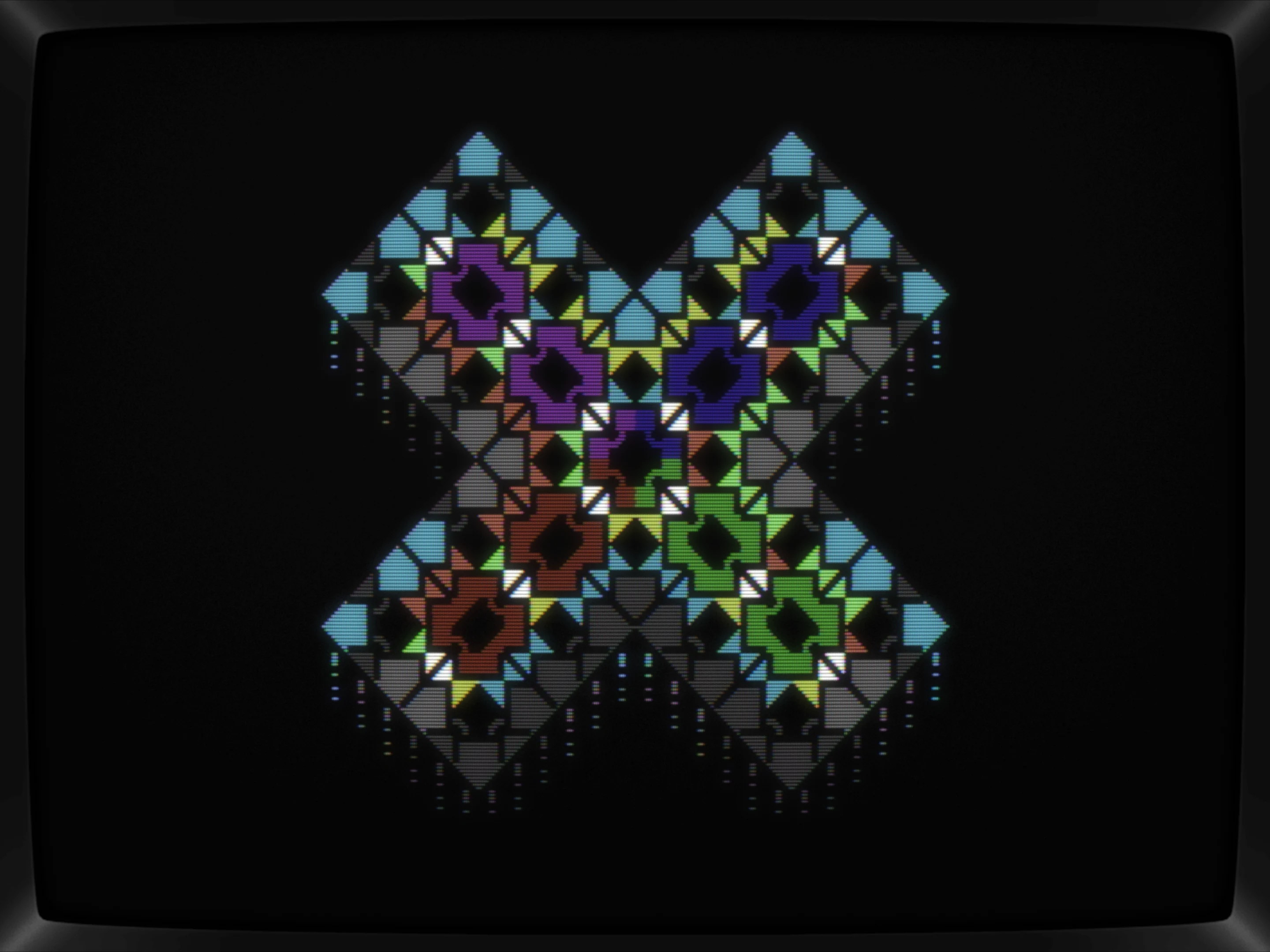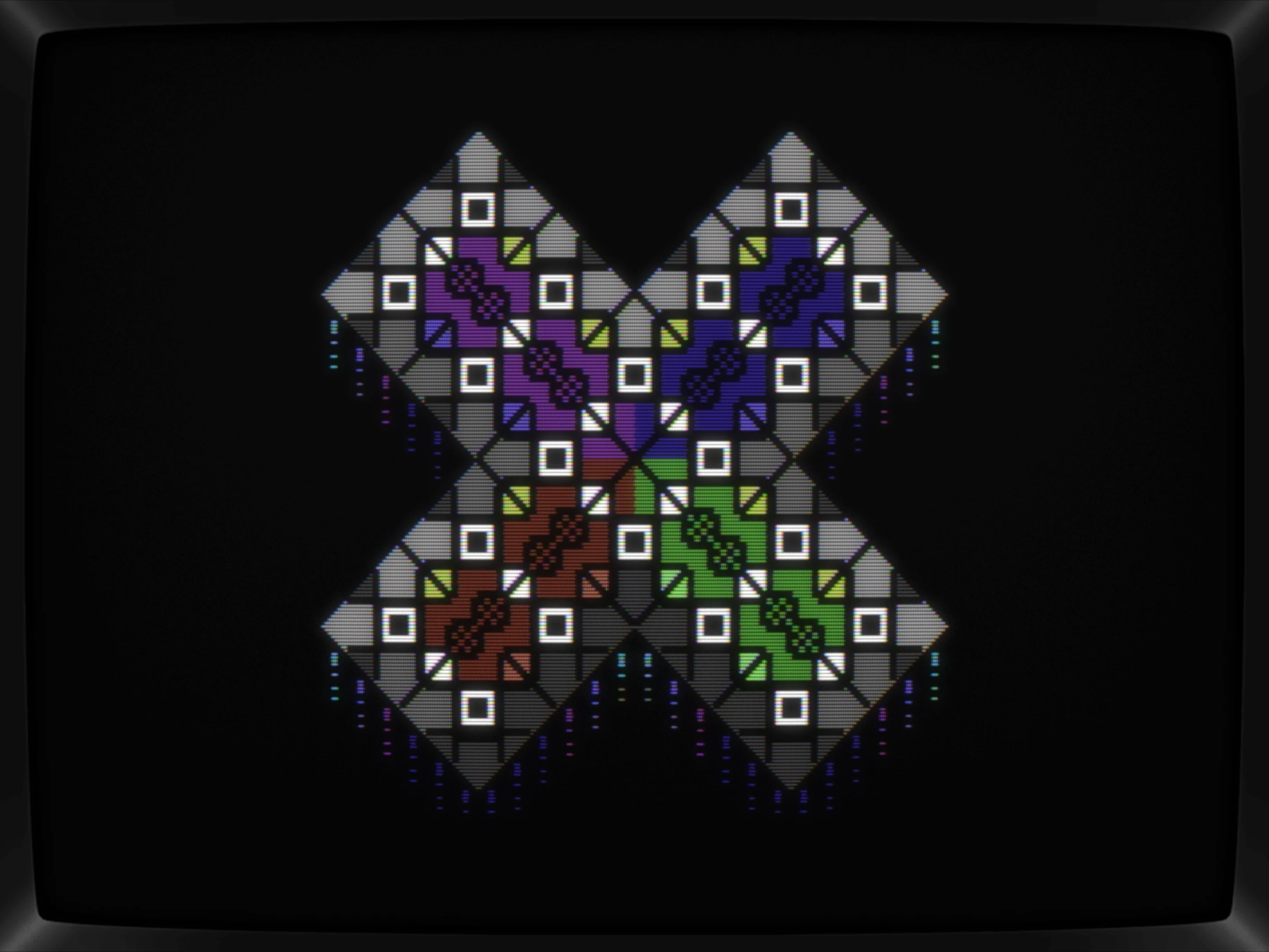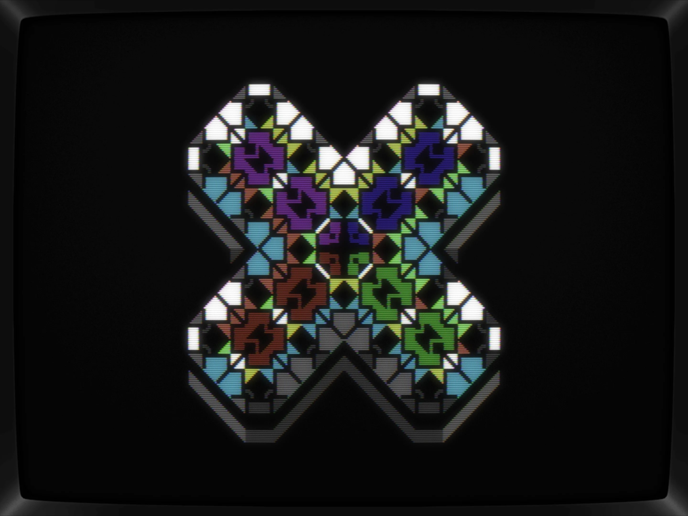 First things first, the "arrows" needed fixing, or more precisly, those shapes felt like arrows and thus was tweaked to resemble ones. The overall pattern also got some iterations, although only this following step survived the session. Throwing in a checkerboard char felt bold but boring, but after adding a contour, it kinda started working for me.