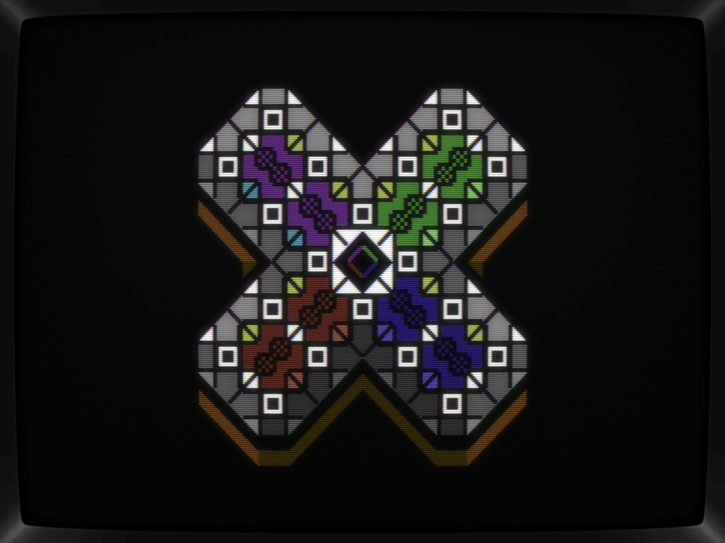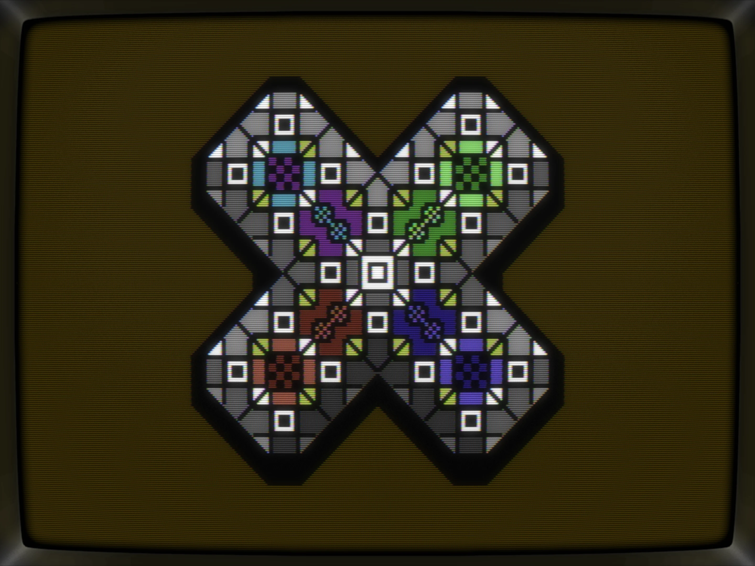 I also did an iteration of it, fooling around with border for the X as well as working on the hardest part, the four chars in the very center.